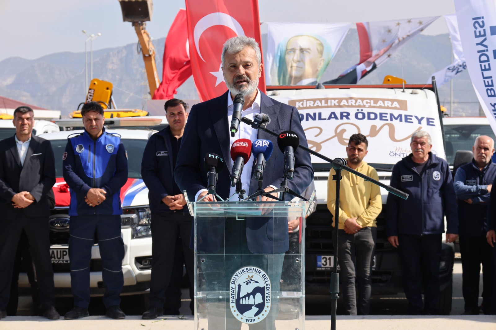 Özel, “Artık HATSU ve daire başkanlıkları, bir muhtar veya bir belediye başkanı greydere ihtiyaç duyduğunda bir hizmet talep ettiğinde kiralanan araçların firmalarının şoförlerinin inisiyatifiyle değil Hatay’ın evlatlarından müteşekkil Hatay Büyükşehir Belediyesi’nin evlatları vasıtasıyla vatandaşla muhatap olacaklar.” İfadelerini kullanarak alınan araçların Hatay’ın inşa ihya sürecinde önemli rol oynayacağını açıkladı.