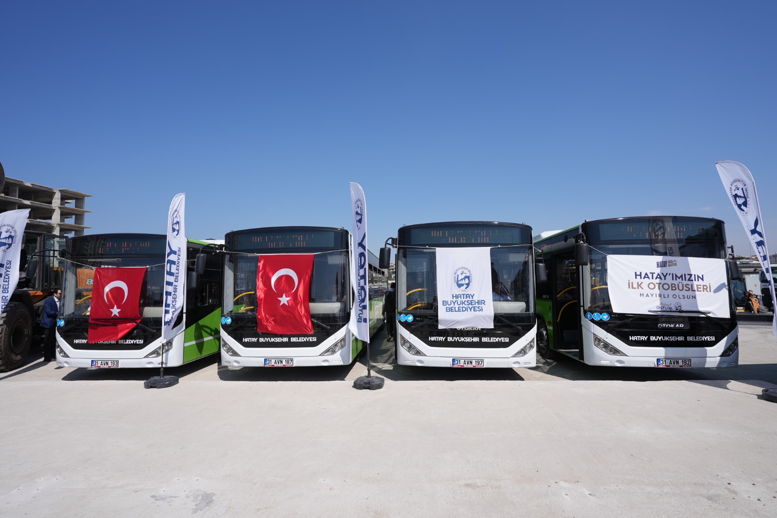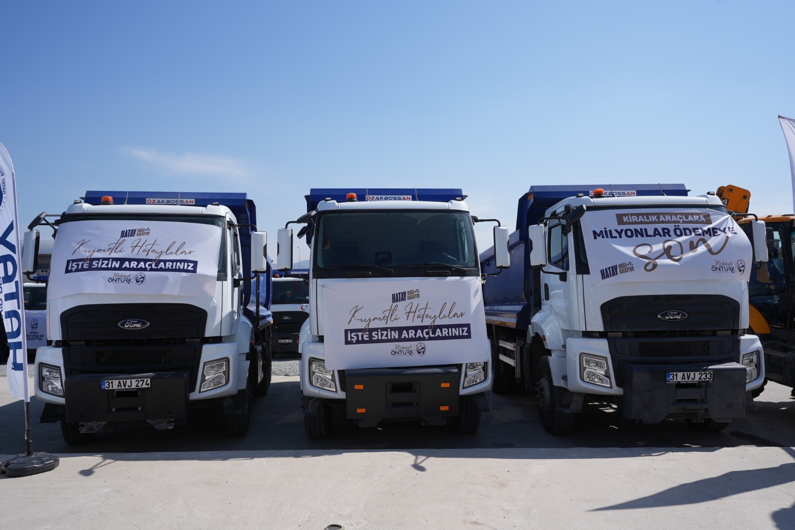 Başkan Öntürk, “Araçlarımız şehrimize, vatandaşımıza hayırlı uğurlu olsun. Bugünden sonra da kolay bir süreç olmayacak. Ama biz, yılmayacağız, yorulmayacağız, vazgeçmeyeceğiz. Çünkü biz, Hatay’a aşığız, bu şehre hizmet etmekten onur duyuyoruz.Bu yolda, sizlerin desteğine, sizlerin duasına ihtiyacımız var. El ele vererek, omuz omuza vererek, Hatay’ımızı 15 ilçesiyle, kimseyi ayırmadan yeniden ayağa kaldıracağız. Bu araçlar, yeni bir umudun, yeni bir başlangıcın simgesi olsun. Bu araçlar, Hatay’ın yeniden doğuşunun sembolü olsun. Hatay için Durmak Yok! Yola devam!” ifadeleriyle konuşmasını sonlandırdı.